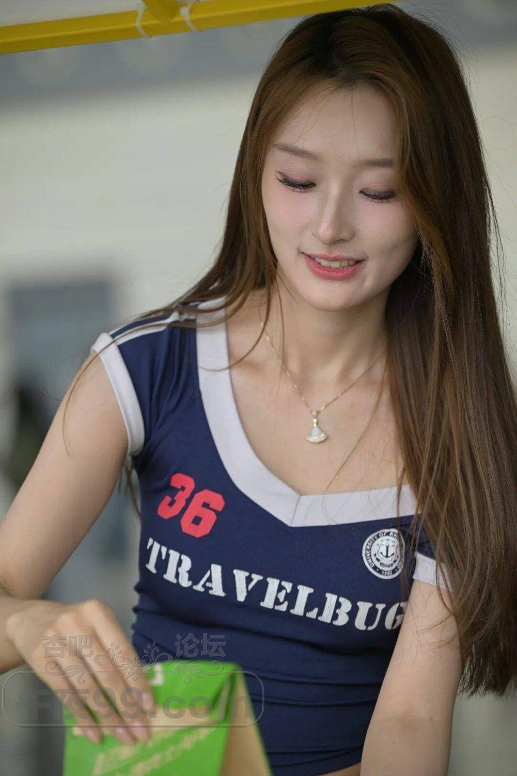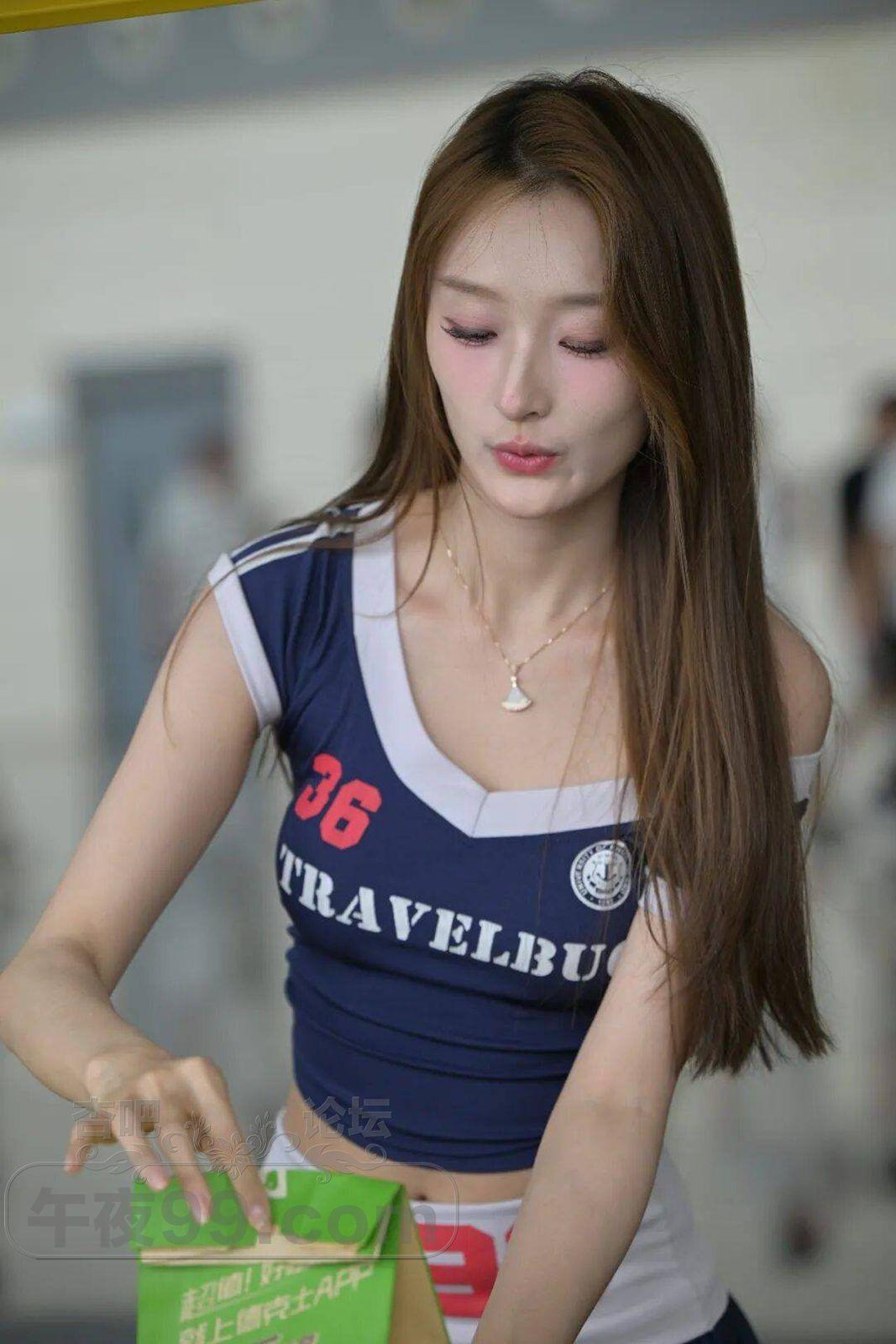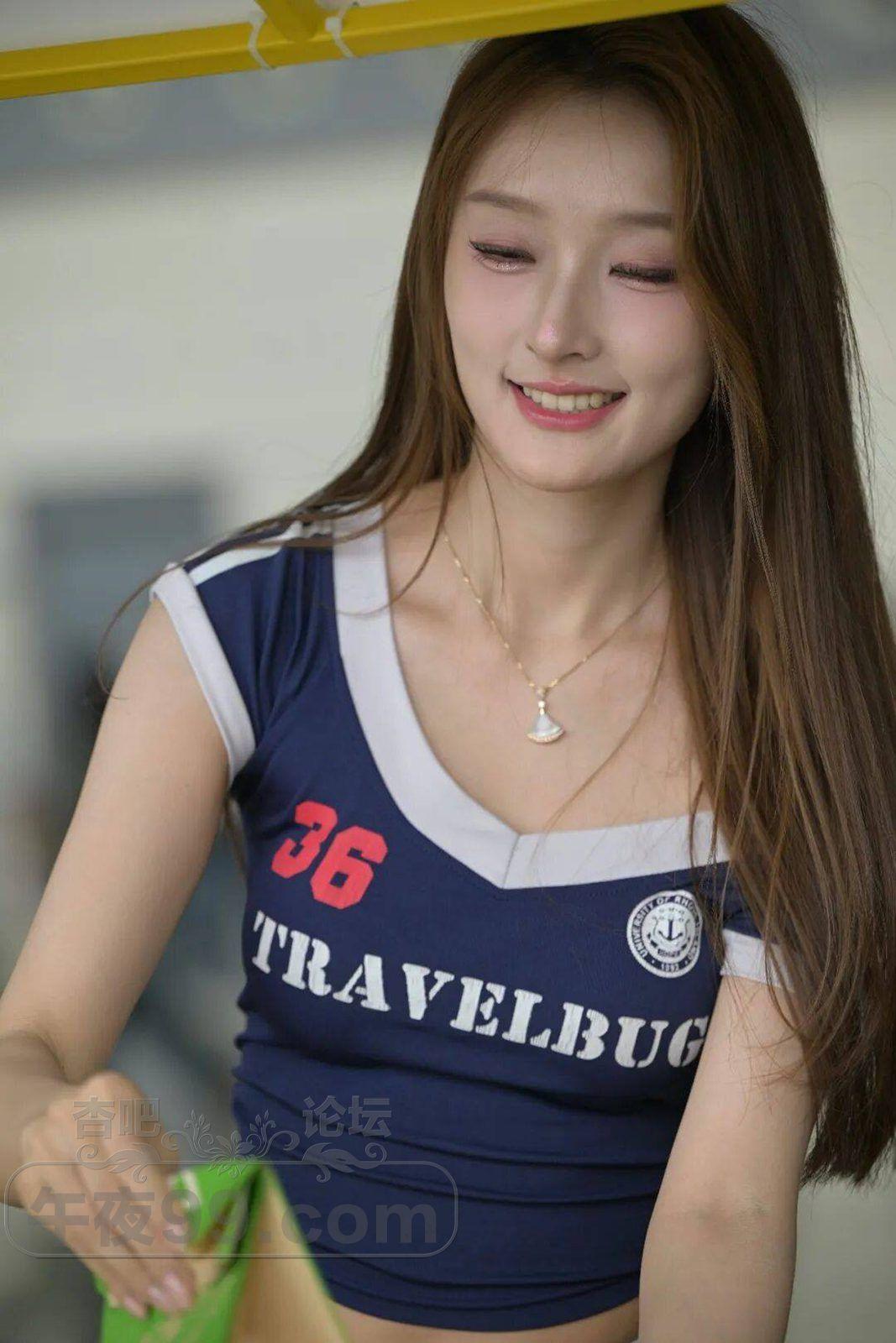 高挑美女藏蓝色辣妹套装, 很火的美式学院风运动衣活力四射【17P】